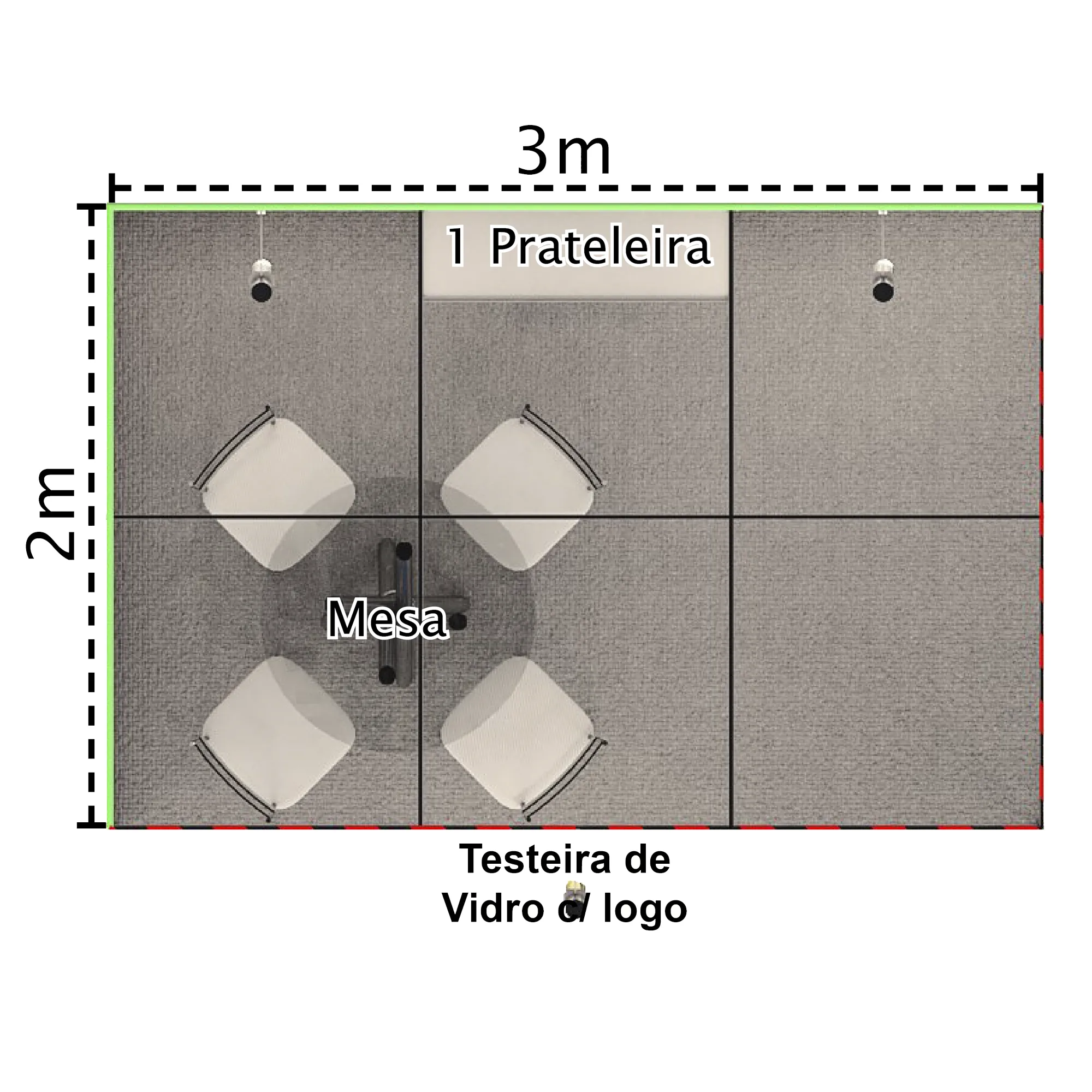 1 x Testeira com logo impresso de 0,98m x 0,413m